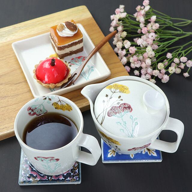 波佐見焼の薄くて軽い器に、手描きのハーブ模様がデザインされています。普段使いにちょうどいい、柔らかな優しい雰囲気の粉引の器。軽いので洗い易く収納し易いのも嬉しいポイントです。