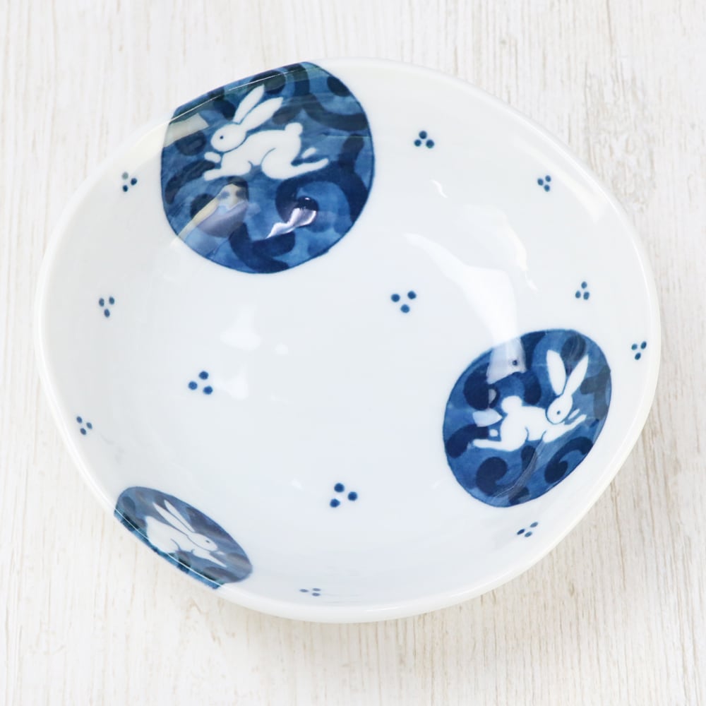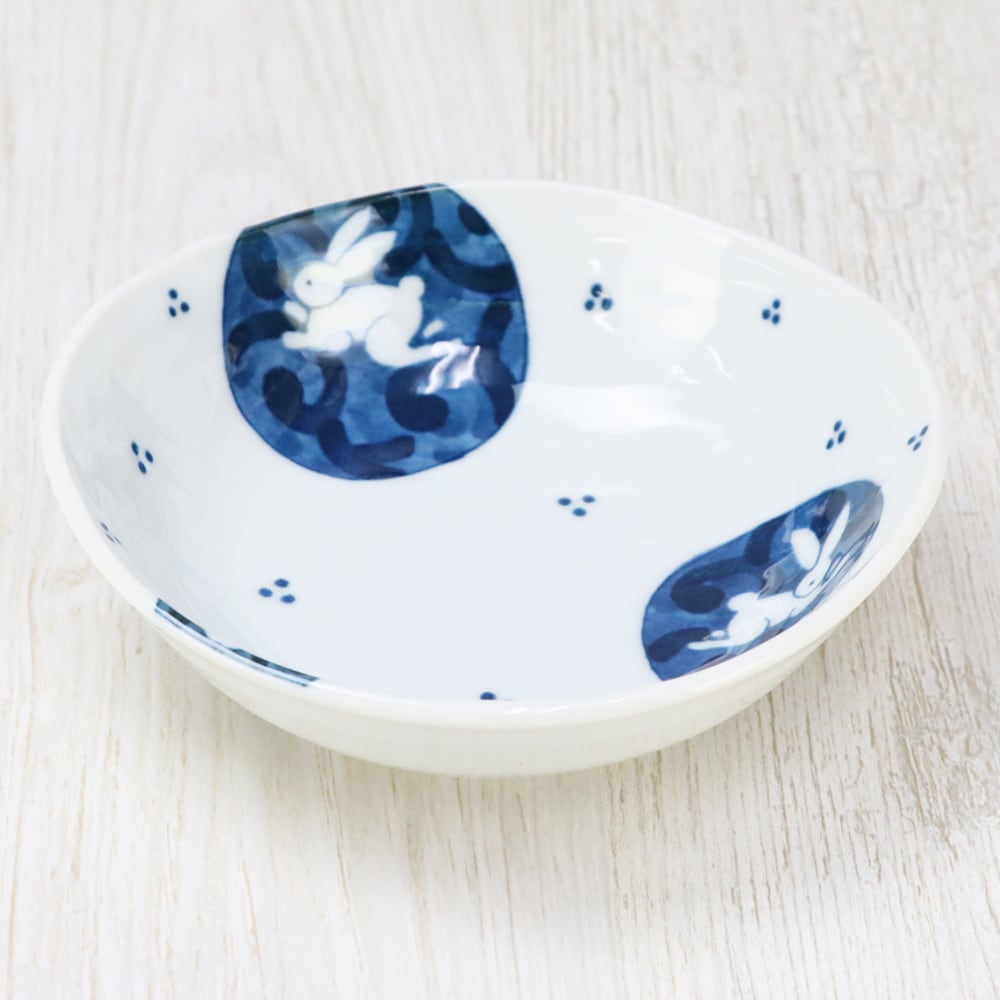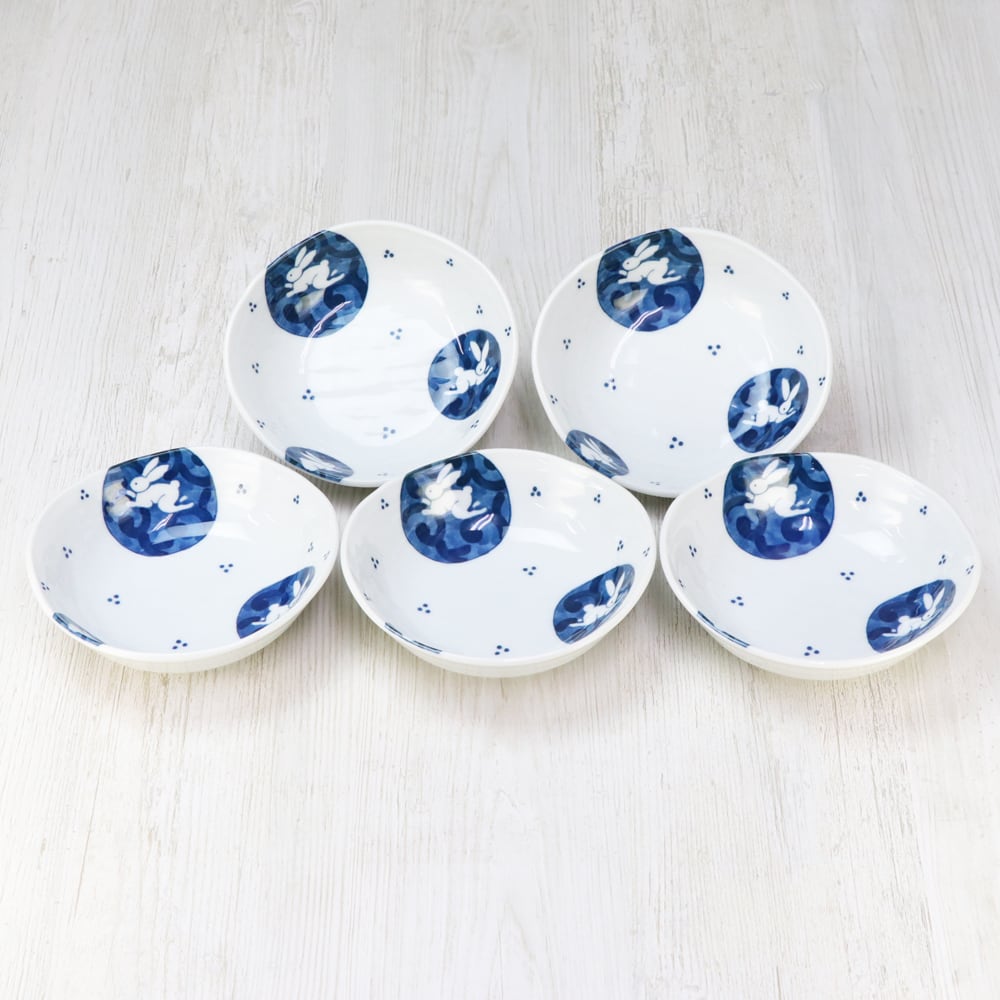 丸紋うさぎ 楕円取り鉢 5枚組(美濃焼)