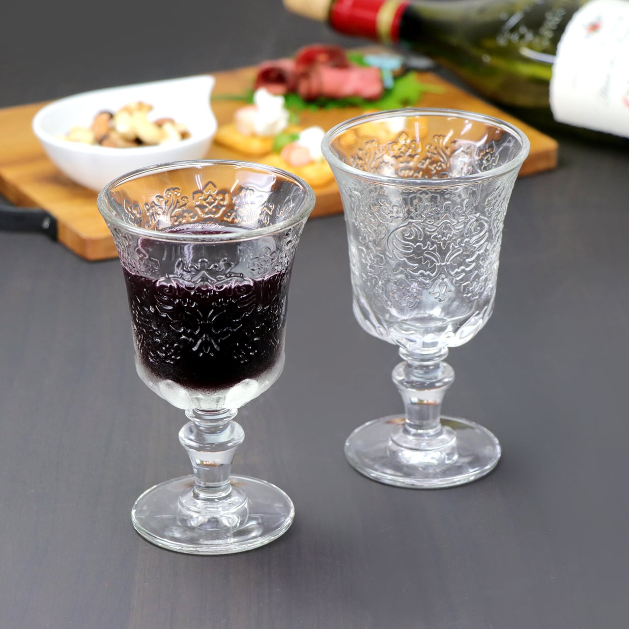 アンボワーズは、底にアーモンドととげ模様が施されており、15世紀に生まれたベネチアンガラスからインスパイアされた作品です。 ルネサンス時代のアラベスク模様を引き継いだ立体的な花柄がハートをかたどっています。 愛情や魅力、誠実さを連想させるためハートが選ばれました。繊細な花柄のレリーフをお楽しみください。