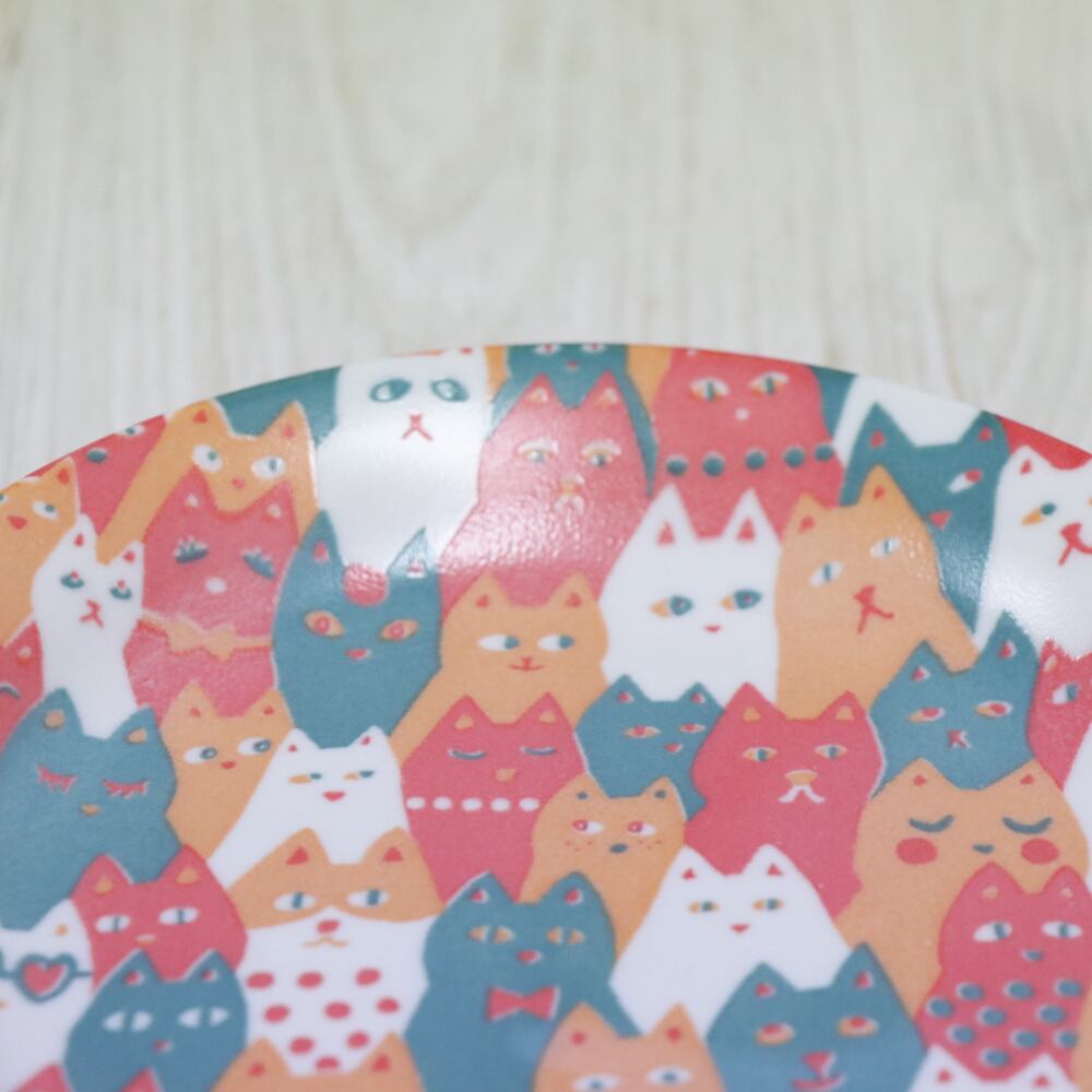 猫だらけ カラフルプレート/取り皿・日本製・猫・ネコ・かわいい・赤・オレンジ・ピンク・イラスト・贈り物・プレゼント・和風・セット