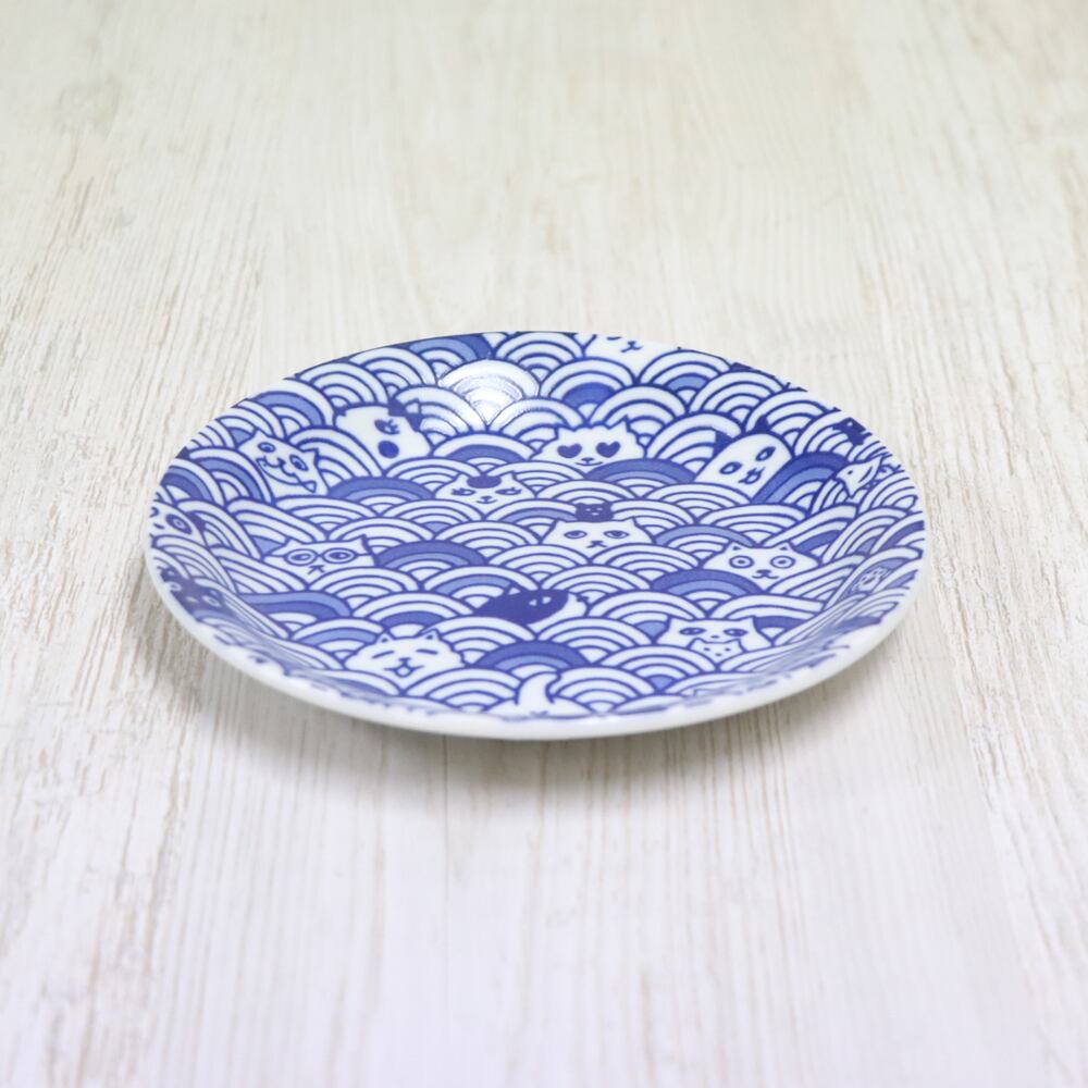 猫だらけ 青海波 プレート 取り皿・日本製・猫・ネコ・かわいい・青・イラスト・贈り物・プレゼント・スイーツ・和風・セット